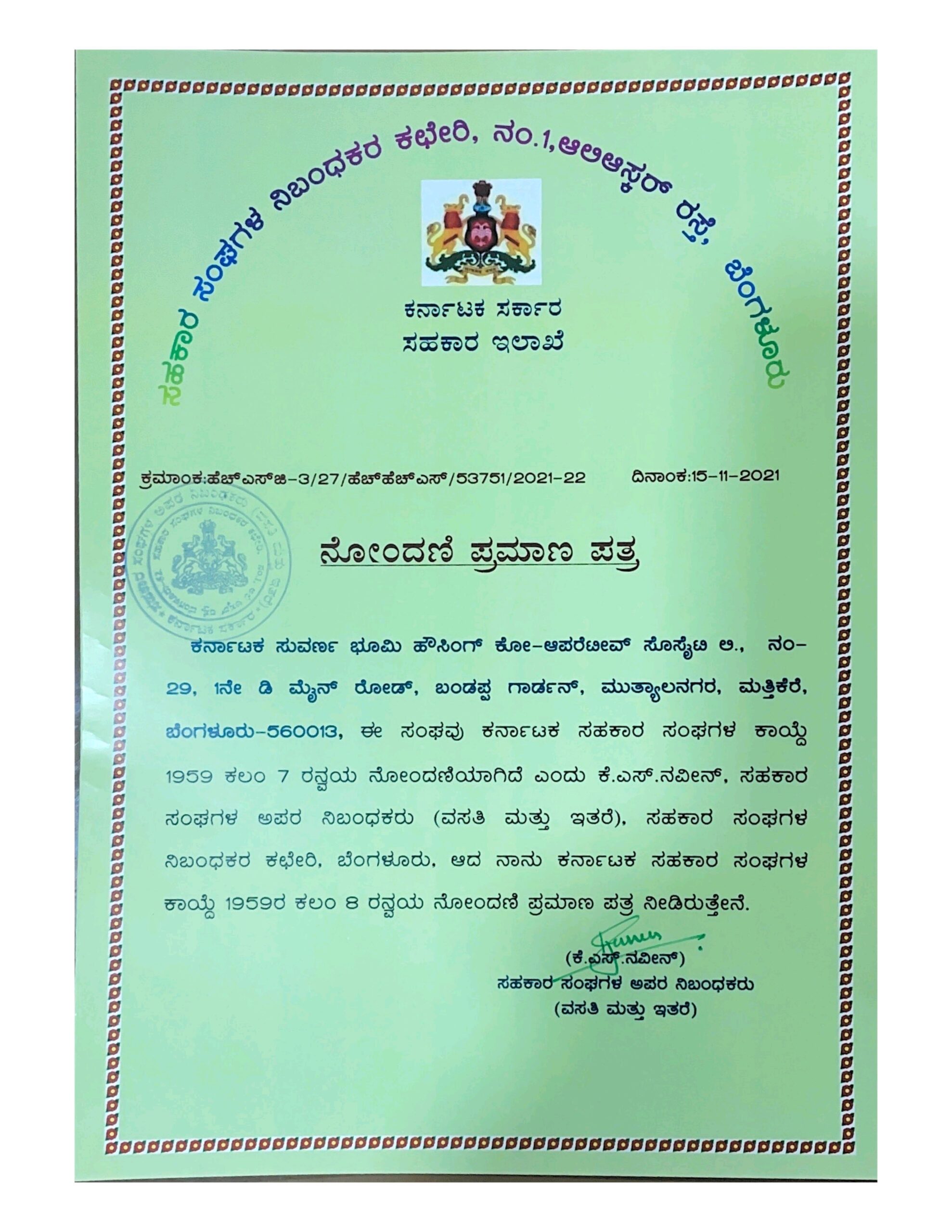 View More Details"ಕರ್ನಾಟಕ ಸುವರ್ಣ ಭೂಮಿ ಹೌಸಿಂಗ್ ಕೋ-ಆಪರೇಟಿವ್ ಸೊಸೈಟಿ ಲಿಮಿಟೆಡ್ನ ಪರವಾಗಿ, ನಮ್ಮ ಎಲ್ಲಾ ಗೌರವಾನ್ವಿತ ಸದಸ್ಯರು ಹಿತೈಷಿಗಳು ಮತ್ತು ಸಾರ್ವಜನಿಕರಿಗೆ ಹಾರ್ದಿಕ ವಂದನೆಗಳು."